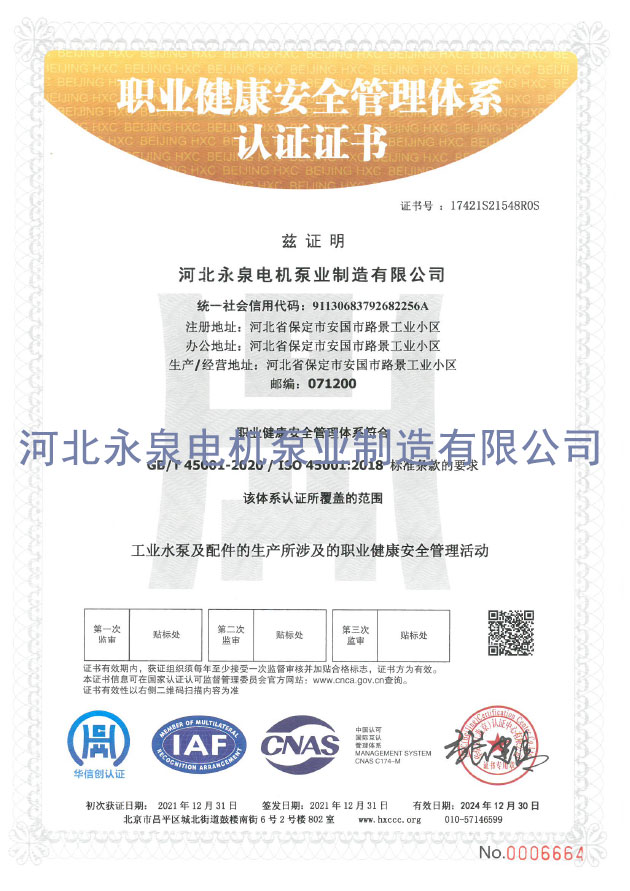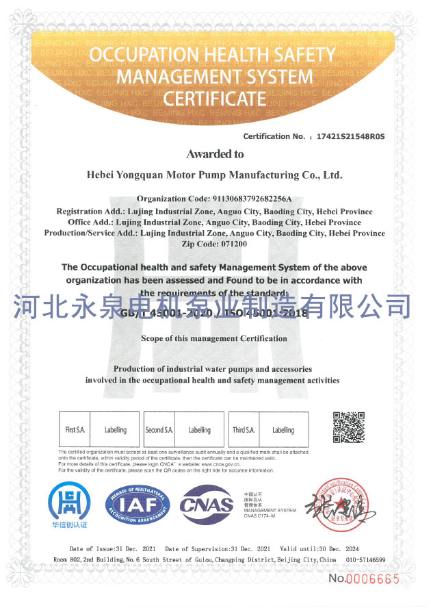 職業(yè)健理體系(xì)認證證書(shu)