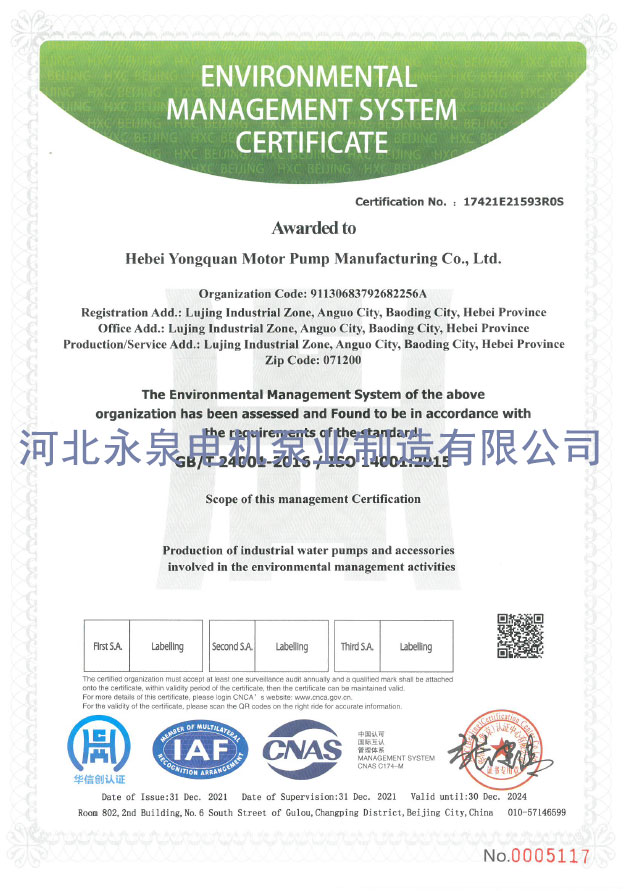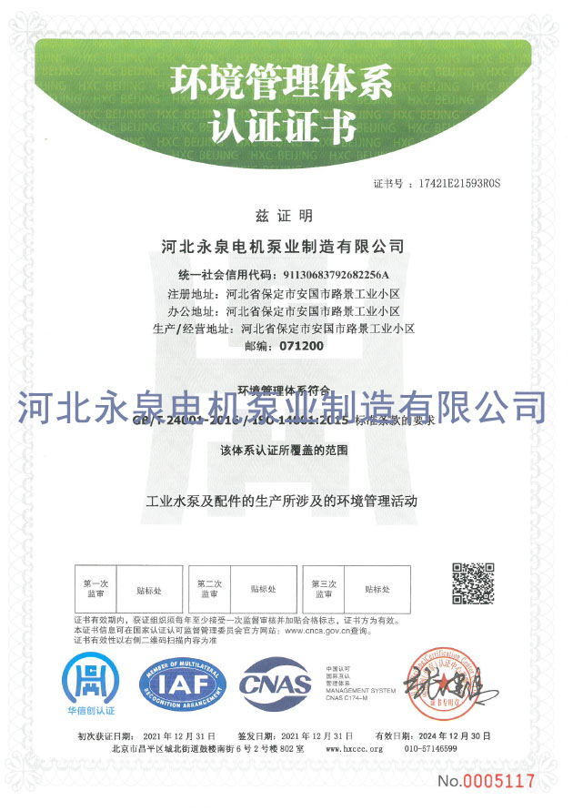 環境(jìng)管理體系(xì)認證證書(shū)