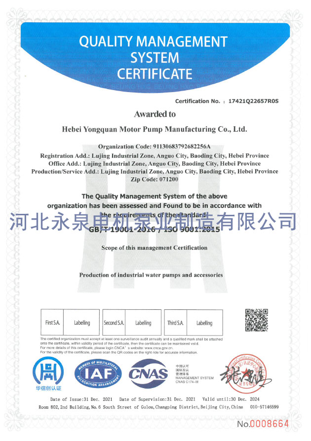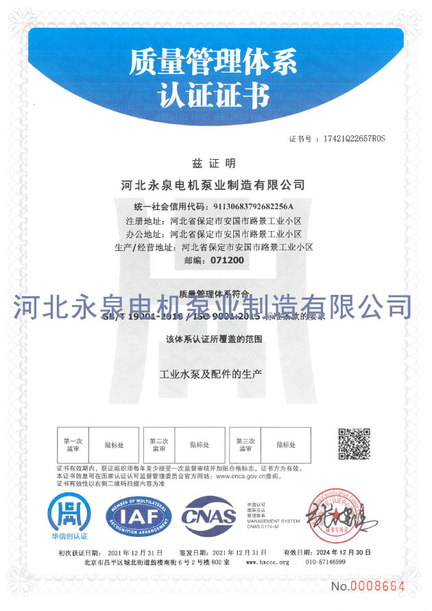 質量(liàng)管理體系(xi)認證證書(shū)
