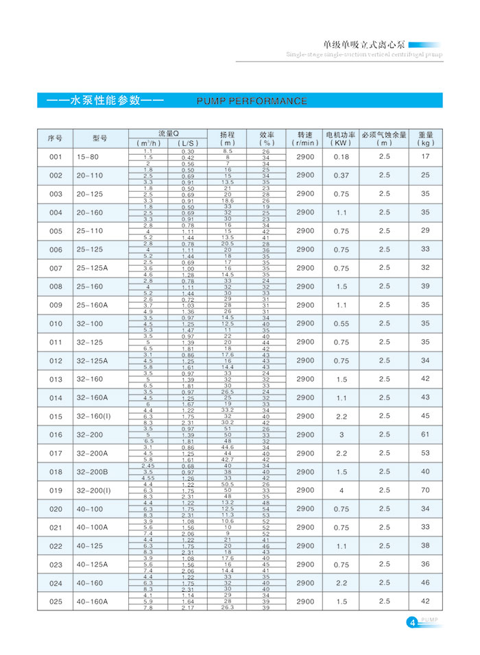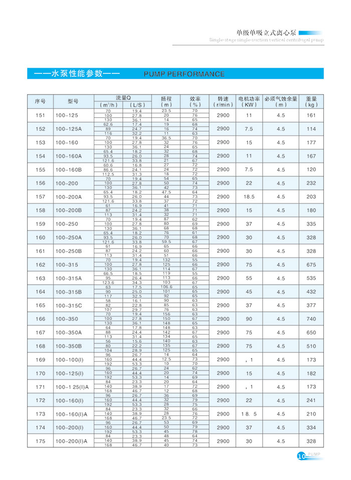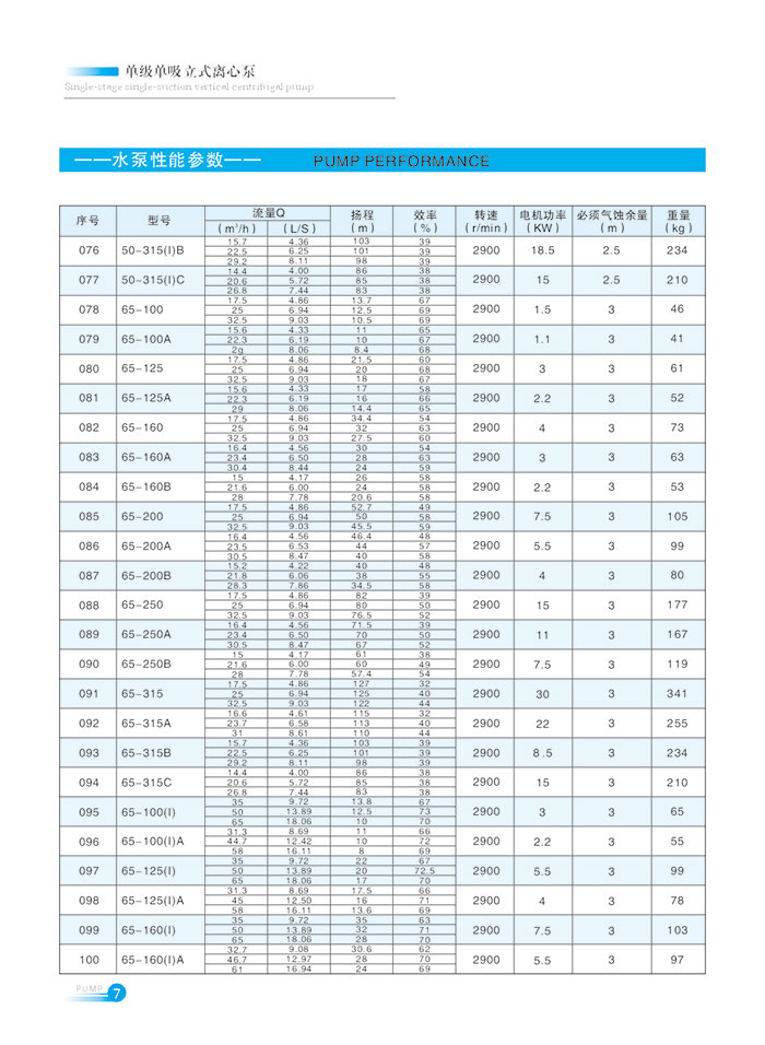 流量(liang)範圍1.5~1200m7h,揚程範圍8-150m,分(fen)基本型、擴流型,A,B,C切(qiē)割型等250多種規格(ge)。根據流量介質和(he)溫度不同,設計制(zhì)造成同性能參數(shu)的熱㊙️水泵👈、化工泵(bèng)、油泵和防爆化工(gong)泵系🌐列産品。