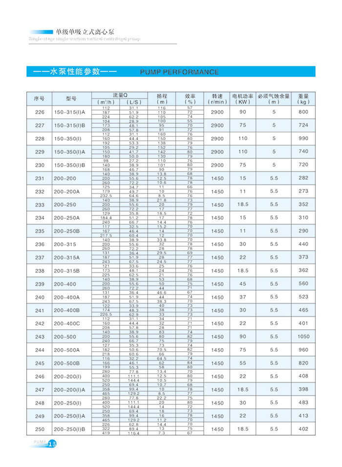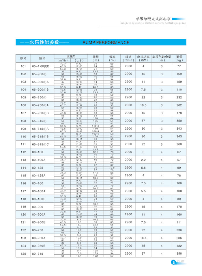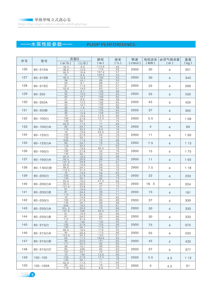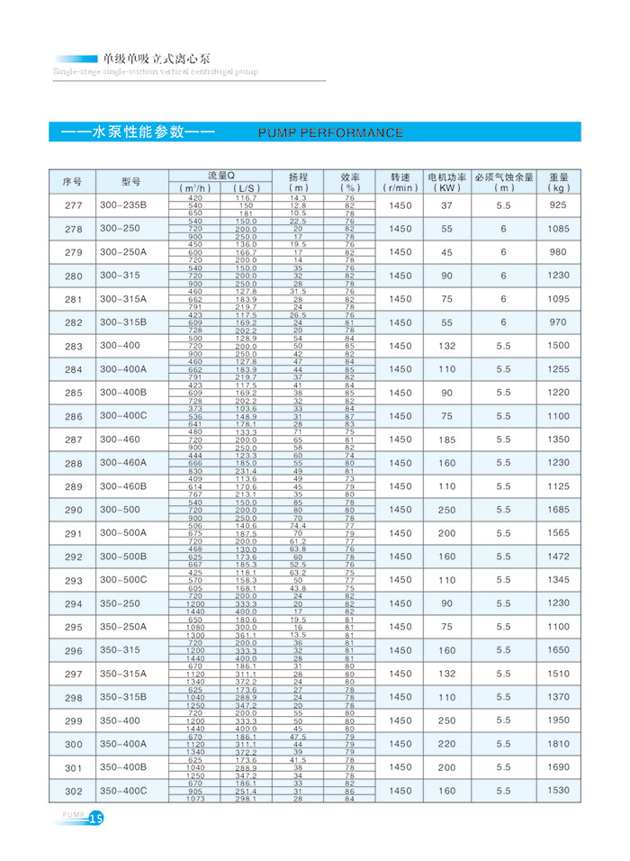 流(liu)量範圍1.5~1200m7h,揚程範圍(wéi)8-150m,分基本型、擴流型(xing),A,B,C切割型等250多種規(guī)格。根據流量介質(zhi)和溫度不同,設計(ji)制造成同性能參(cān)數的熱水泵、化工(gong)泵、油泵和防爆化(hua)工泵系列産品。